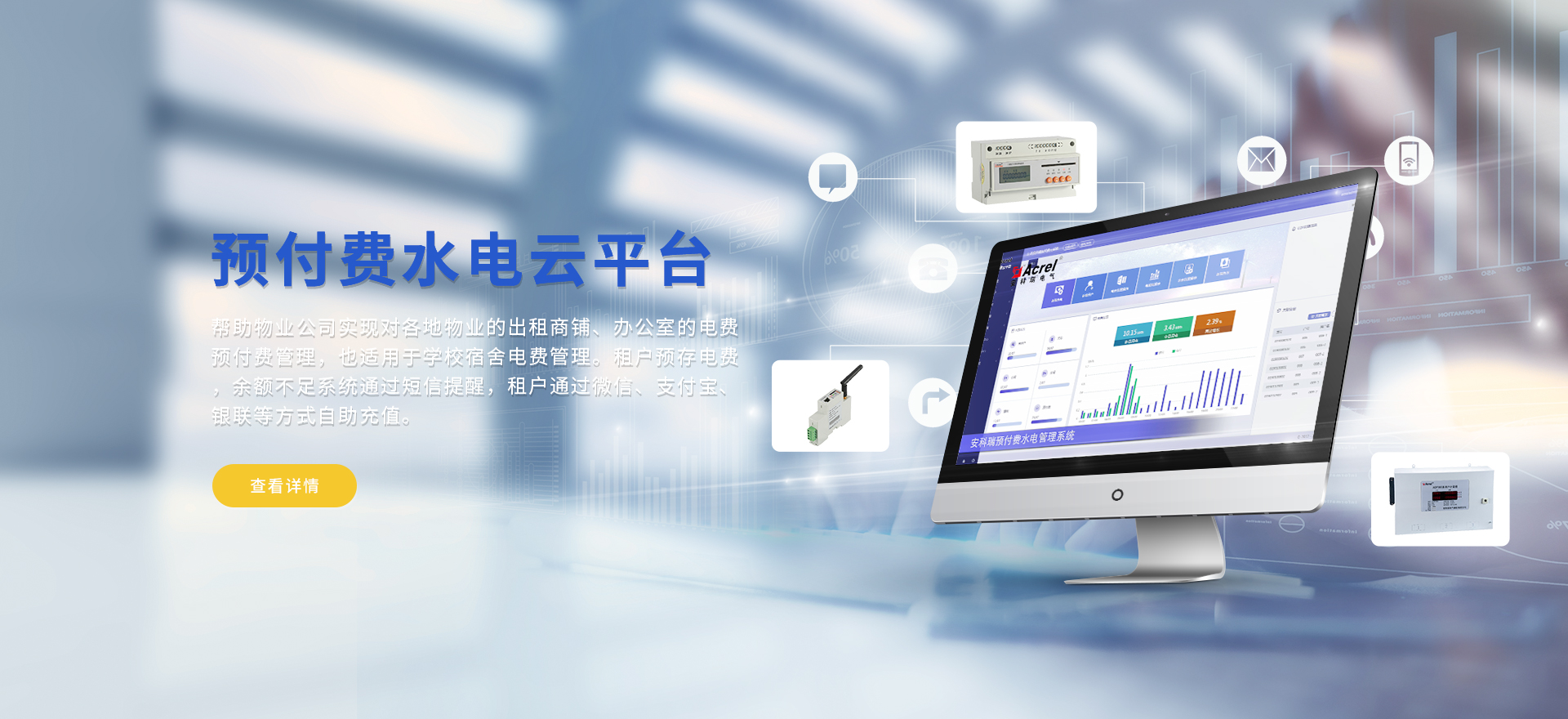 安科瑞提供的解決方案包括Acrel-EIoT能源物聯網云平臺變電所運維云平臺安全用電管理云平臺、環保用電監管云平臺、智慧消防云平臺能源管理云平臺、工業企業能源管控平臺、遠程預付費云平臺、餐飲油煙監管云平臺、電動汽車/電瓶車充電樁收費管理云平臺、電力監控/無線測溫系統、電能質量治理系統、電氣火災監控系統消防設備電源監控系統、防火門監控系統應急照明和疏散指示系統、智能照明控制系統、醫用隔離電源絕緣監測系統等,幫助用戶實現能源智能化、可視化、精細化管理,提高用能效率和用能安全,為企業節能降耗和實現能源數字化建設提供數據服務。
